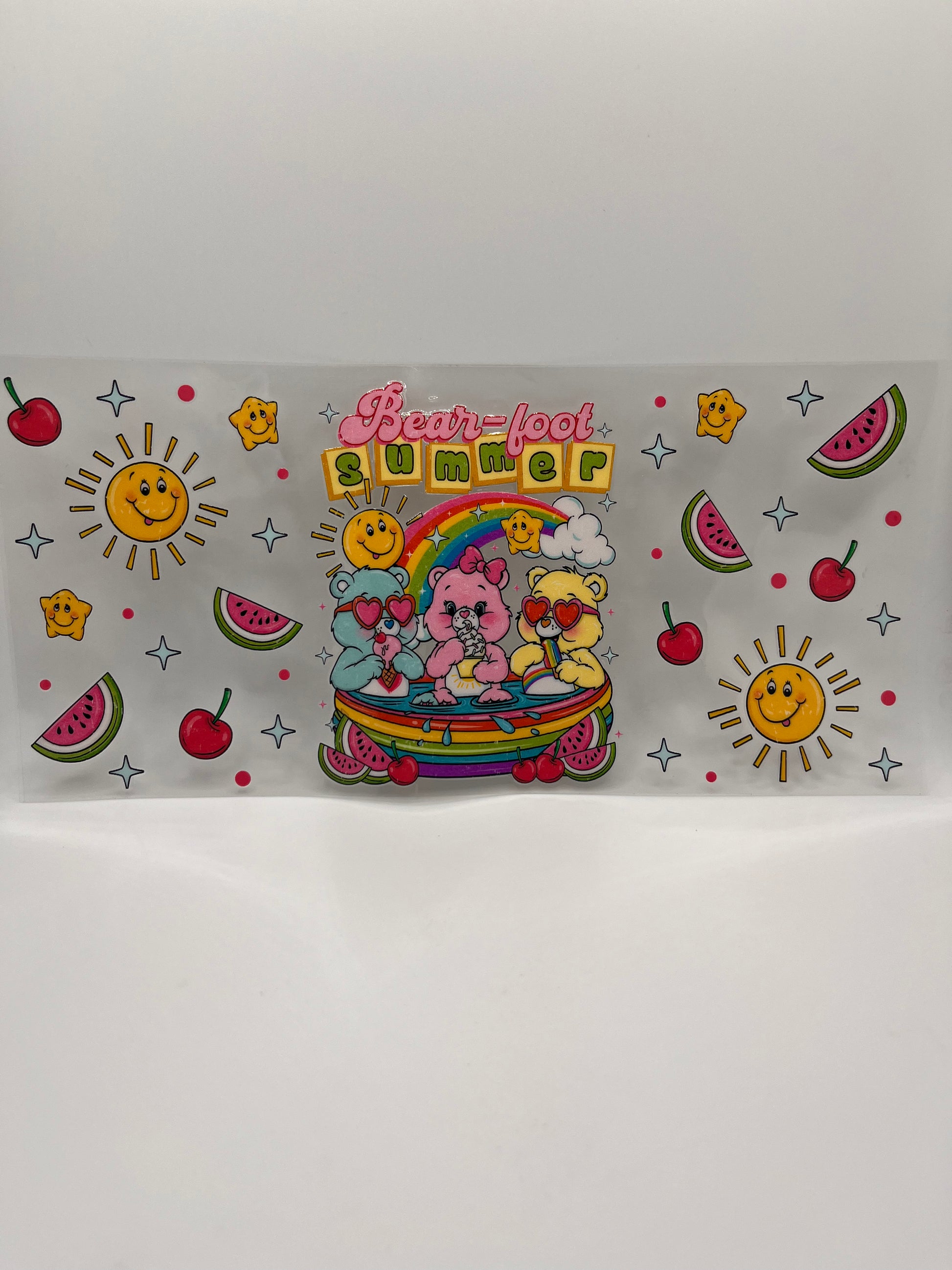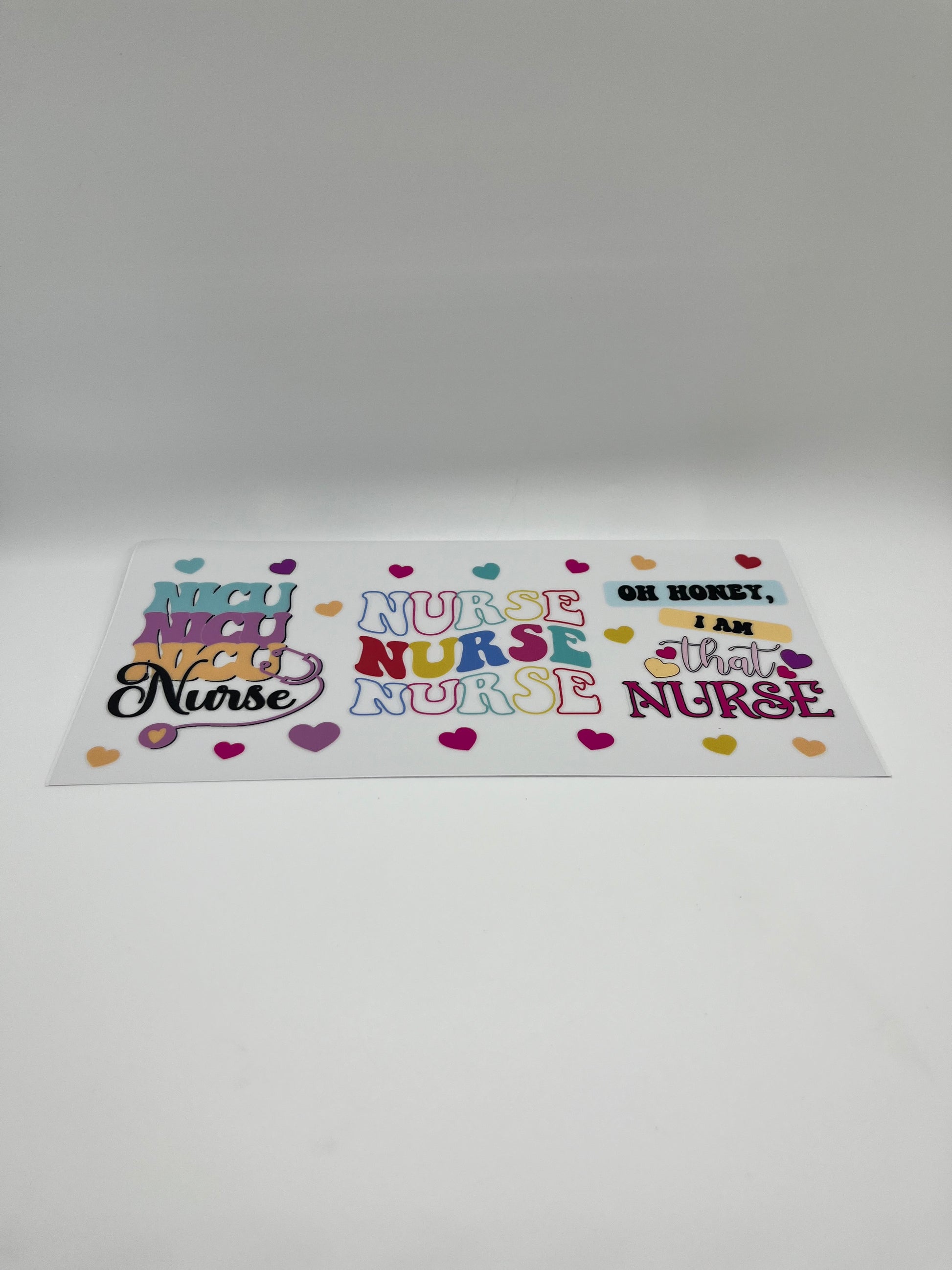 Note that UV DTF Transfers are sticker like, designs are created and printed with UV curable inks onto a special film laminating it. When using our UV DTF Transfers please remember although it is water resistant it should be handwash only.
