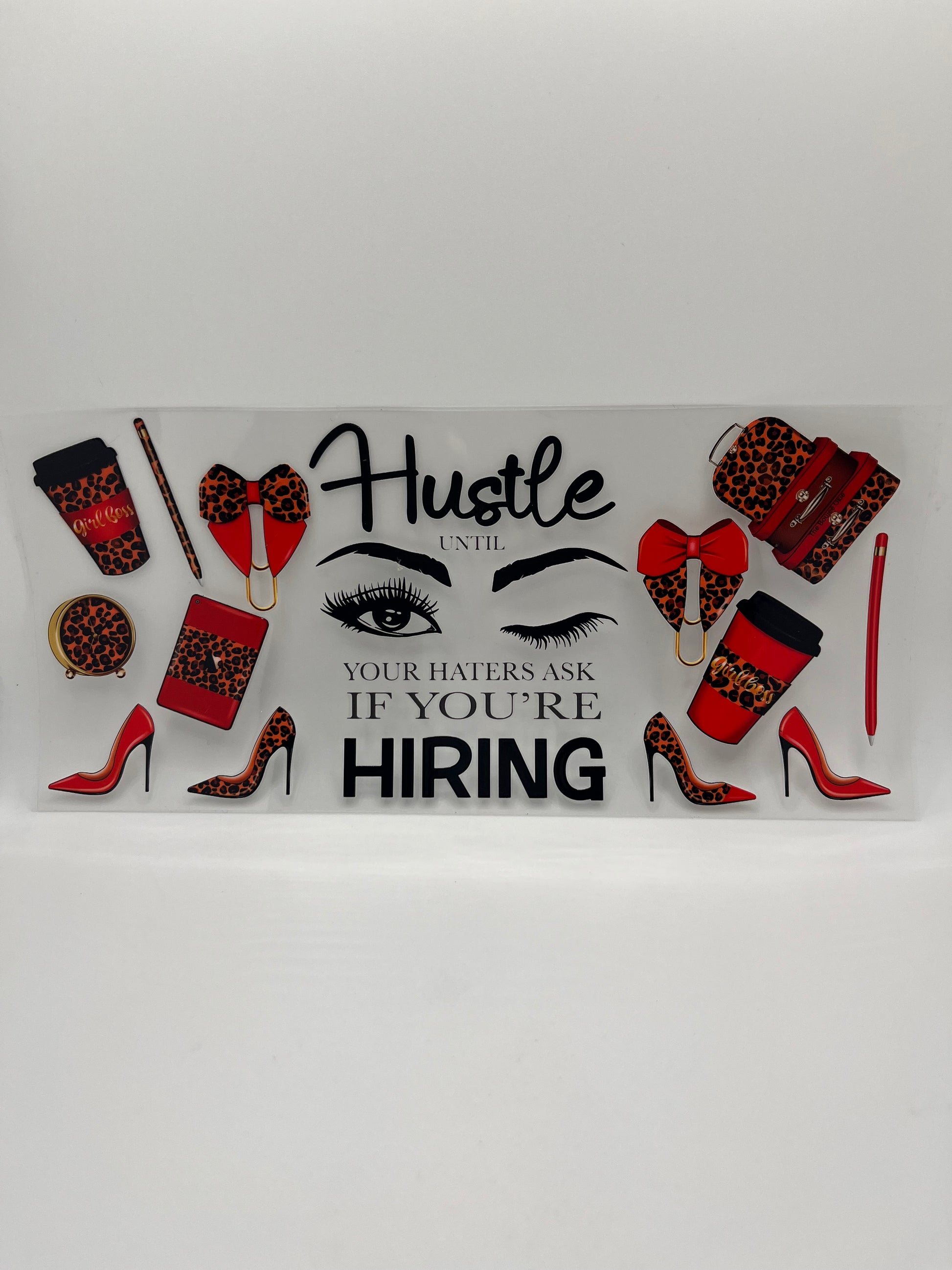 These transfers can be used on almost any hard, smooth, non-porous surface, like glass, metal (stainless steel, aluminum), ceramics (mugs, tiles), plastics (acrylic, phone cases), sealed wood, and even car surfaces creating durable, vibrant decals perfect for drink ware and promo items, decor and outdoor use.