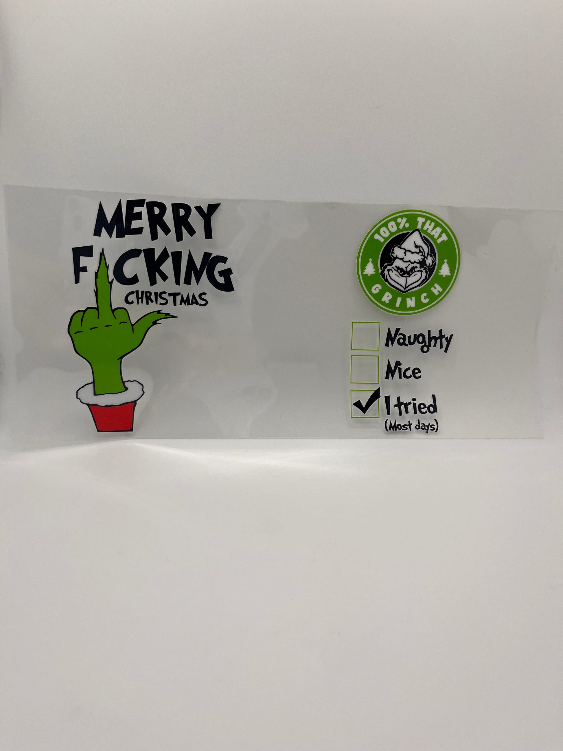 There is now an option to buy our UV DTF Transfers by itself and or on our 16oz acrylic cups (includes straw & lid) OR 15oz ceramic mugs. Our UV DTF Transfers fits our 16oz acrylic cups, and 15oz ceramic mugs perfectly. For other surfaces/items you may have to cut up the transfer and apply it that way.